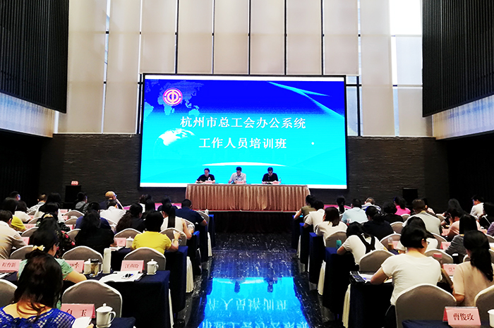 2018年8月21日下午,杭州市总工会办公室系统工作人员培训班在我校顺利开班。杭州市总工会党组书记、常务副主席吴仁财出席开班仪式并做开班动员,我校党委书记、校长傅建成致开班辞,杭州市总工会办公室主任祝宇安主持开班仪式,来自杭州市县(区)办公室系统干部70余人参加了开班。