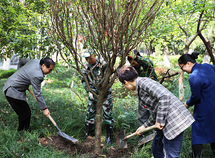 活动现场,教职工热情高涨,以部门为单位,挥锹铲土、扶树填土、提水浇灌,忙得不亦乐乎。经过一番热火朝天的劳动,一棵棵樱花树竖立起来,成为校园里一处亮丽的风景。